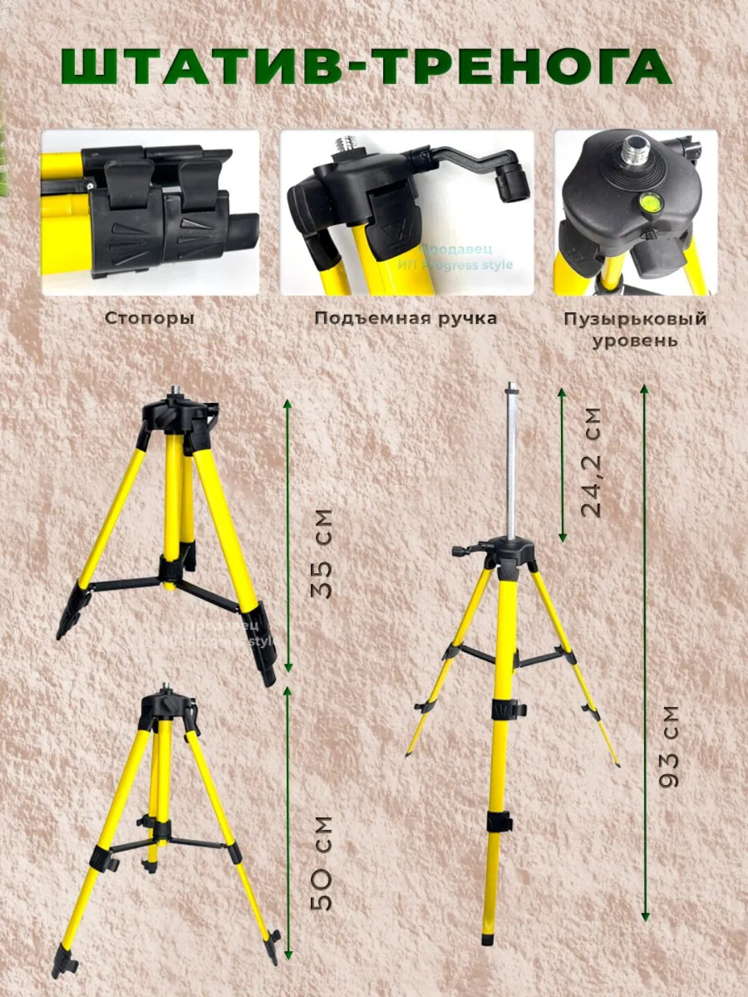 Новый лазерный уровень-это современный инструмент, который поможет вам быстро и профессионально выполнить ремонт или отделку. Этот уровень имеет 3D-4D-модель, охватывающую пространство на 360 градусов, что позволяет работать с ним в любой точке комнаты. Благодаря степени защиты от пыли IP54 этот уровень готов к работе в самых сложных условиях. Срок службы батареи обеспечивает до 7 часов непрерывной работы от батареи. Он автоматический и линейный, обеспечивает высокую точность измерения в пределах +-2 мм на 10 м. Ультра-яркий зеленый лазерный луч с длиной волны 532 нм обеспечивает дальность действия до 40 метров без приемника. Таким образом, вы можете работать на больших площадях, не перемещая плоскость. В комплект оборудования Nivelir входят микролифт, штатив, мишень, 2 аккумулятора, зарядное устройство - все необходимое для комфортной и эффективной работы. Обратите внимание, что этот уровень (аналог высокого качества) является высококачественным аналогом, который обеспечивает точные и профессиональные результаты в любом проекте. Я уверен, что эта степень станет незаменимым инструментом для вашего профессионального роста. Успехов в вашем деле!
